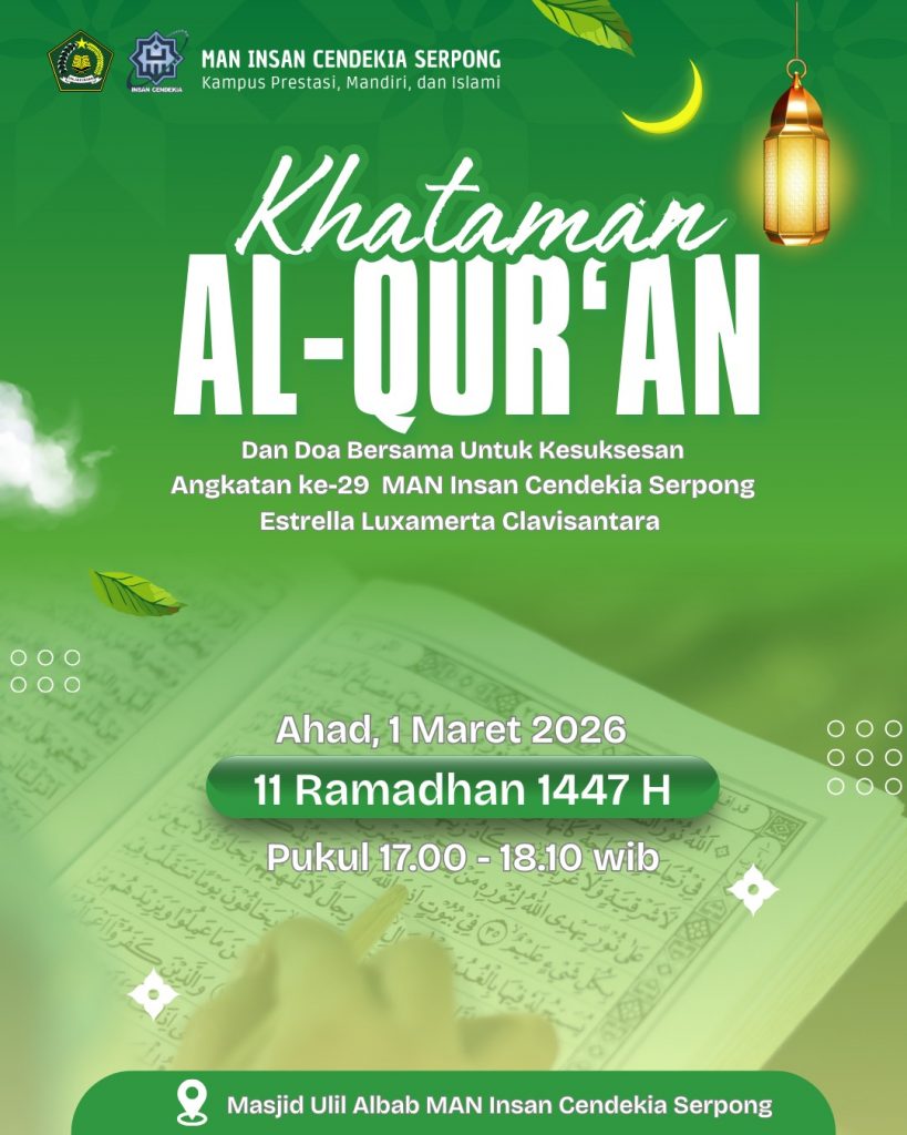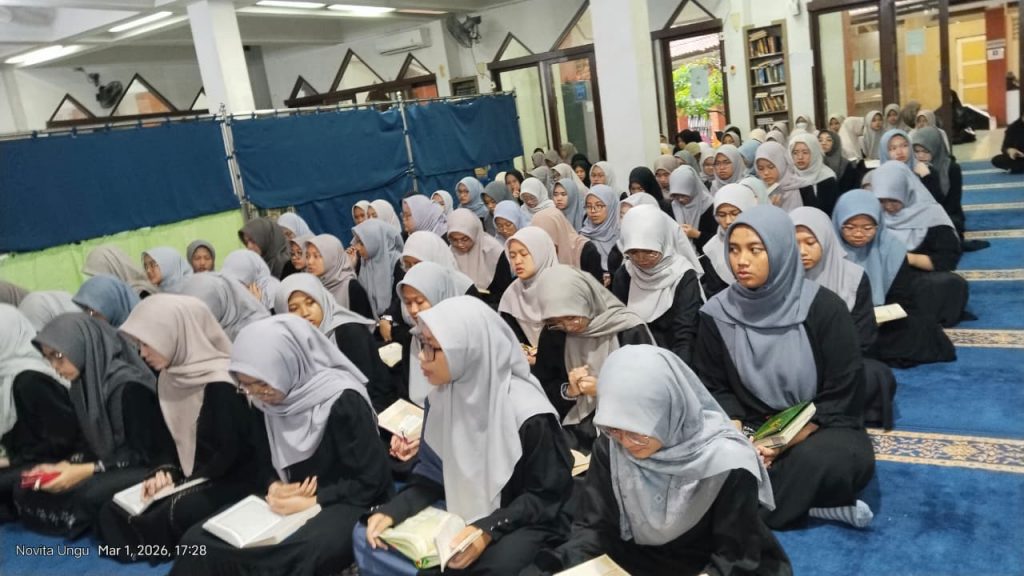 Dalam rangka menyambut Ujian Madrasah bagi siswa kelas XII angkatan Ercava, Bidang keasramaan menggelar acara Khataman Al-Qur’an di masjid Ulil Albab. Kegiatan ini diikuti oleh seluruh siswa mulai dari kelas X hingga kelas XII, sebagai bentuk ikhtiar spiritual memohon kelancaran, kemudahan, dan keberkahan dalam menghadapi ujian yang akan dimulai esok hari.